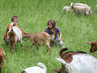 Hier erwarten Sie Ziegen, Schafe, Pferde, Hühner, Schweine, Enten, Gänse, Hasen und Katzen, die gerne auch von Ihren Kindern gefüttert werden dürfen.